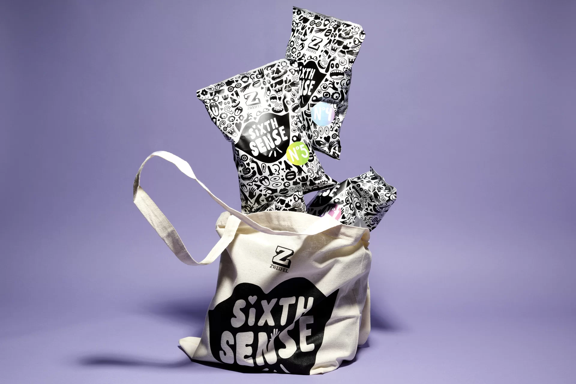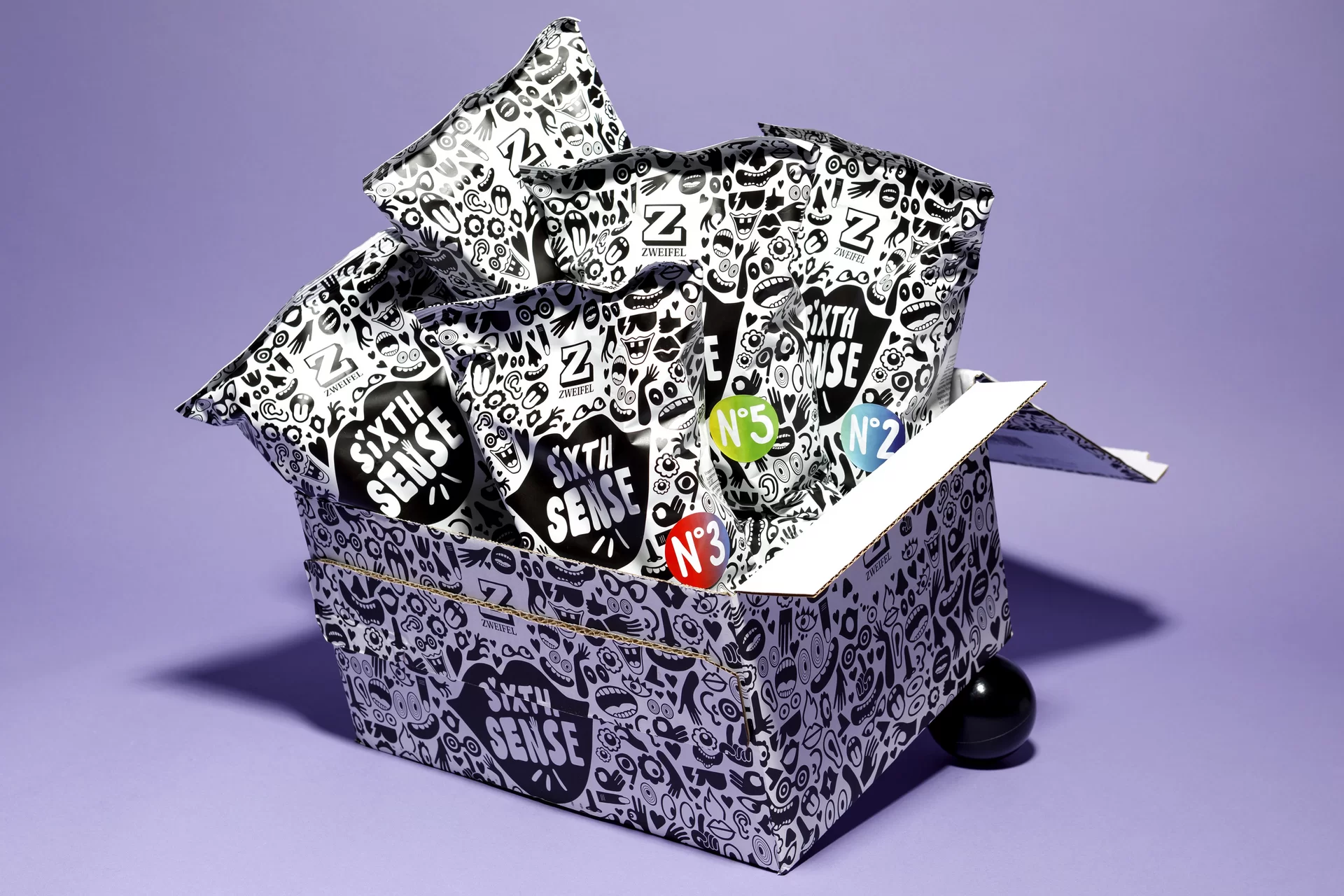 Die Agentur Jung von Matt LIMMAT beauftragt Studio Thom Pfister mit der Erarbeitung eines Designs, welches ein wesentlicher Bestandteil für die aktuelle Sixth Sense Kampagne von Zweifel Chips ist. Im Zentrum stehen sechs neue Chips-Geschmacksrichtungen, alle im gleichen Look, von eins bis sechs durchnummeriert. Es gilt herauszufinden, welche Zutaten sich hinter den geheimnisvollen Geschmacksrichtungen verstecken. Als übergreifender Kampagnenlook wurde vom Studio Thom Pfister ein schwarz-weisses Sixth-Sense-Pattern entwickelt, das sich von den Verpackungen, über den Kampagnen-Hub bis zu animierten Social Media-Elementen wiederfindet.